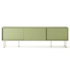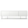 Vogue mediebænk fra Decotique med et moderne design og en luksuriøs fremtoning til alle hjem og stilarter. Den har tre skydedøre i samme farve og seks smalle ben for et eksklusivt indtryk. Tre sektioner med en flytbar hylde i hver sektion til at kunne tilpasse efter smag og behov og tre huller bagtil til ledninger og kabler. Vælg mellem forskellige farver og materialer.